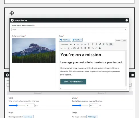 Based on the Block you select, you’ll see a set of text and image fields that comprise the layout.