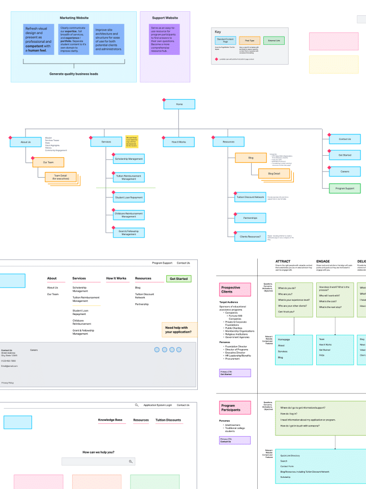 The primary marketing website showcase the company’s comprehensive educational assistance program management services, with details on the services provided, how the process works, and related resources.